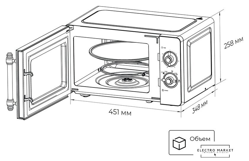 отдельностоящая, микроволны (соло), объем 23 л, выходная мощность микроволн 800 Вт, управление электронное, автоприготовление, авторазмораживание, цвет черный