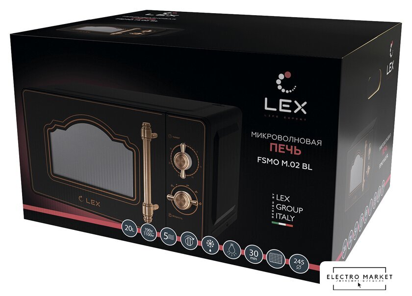 отдельностоящая, микроволны (соло), объем 20 л, выходная мощность микроволн 800 Вт, управление электронное, автоприготовление, авторазмораживание, цвет черный