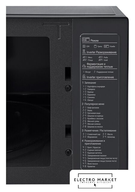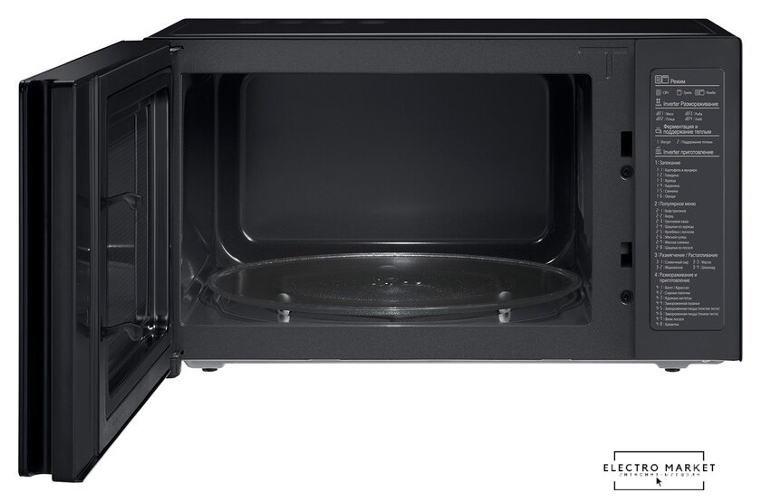 отдельностоящая, микроволны и гриль, объем 23 л, выходная мощность микроволн 900 Вт, управление электронное, автоприготовление, авторазмораживание, цвет черный