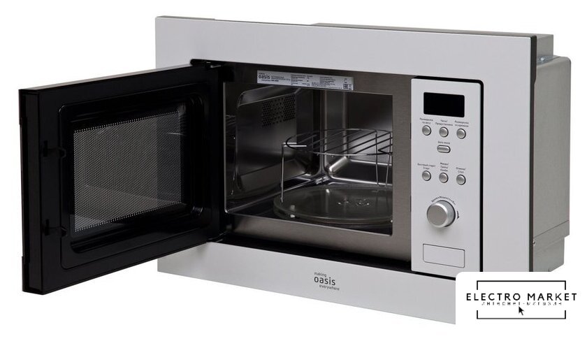 встраиваемая, микроволны (соло), объем 20 л, выходная мощность микроволн 800 Вт, управление механическое, цвет нержавеющая сталь