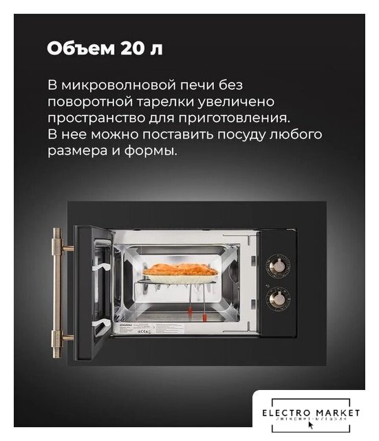 встраиваемая, микроволны и гриль, объем 20 л, выходная мощность микроволн 800 Вт, управление электронное, автоприготовление, авторазмораживание, цвет черный