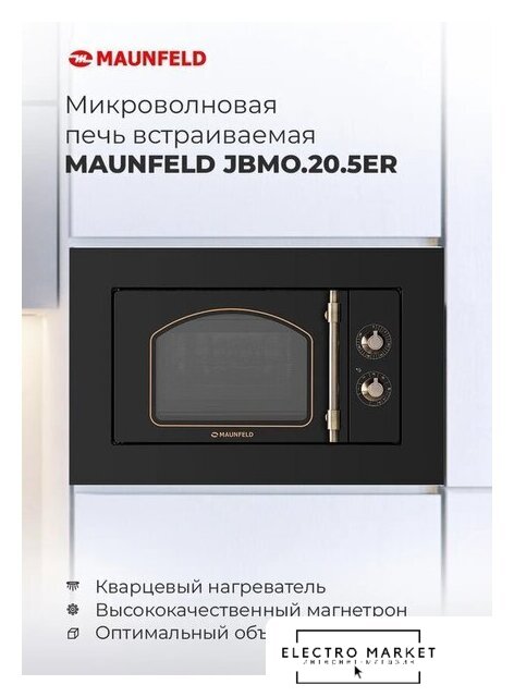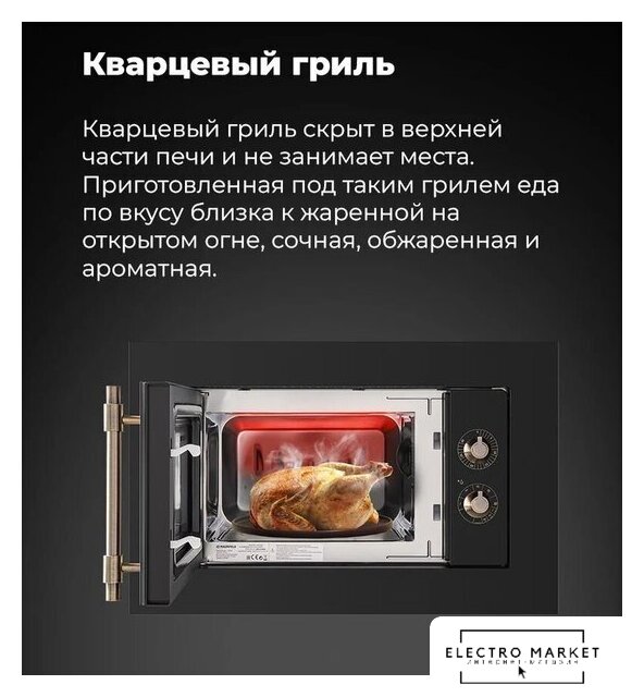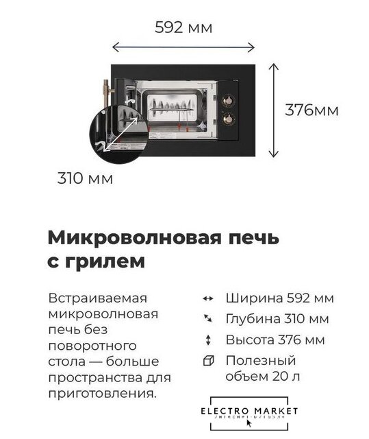 встраиваемая, микроволны и гриль, объем 20 л, выходная мощность микроволн 700 Вт, управление механическое, цвет черный