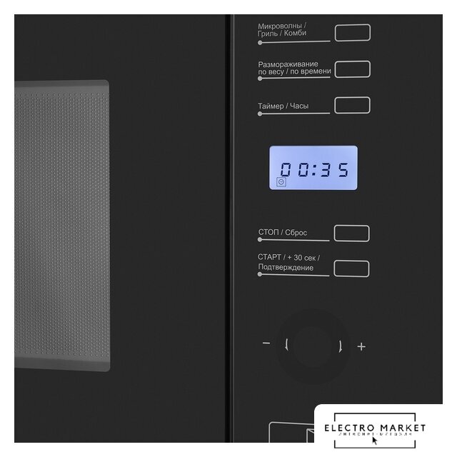 встраиваемая, микроволны и гриль, объем 18 л, выходная мощность микроволн 700 Вт, управление электронное, автоприготовление, авторазмораживание, цвет черный