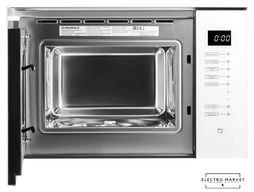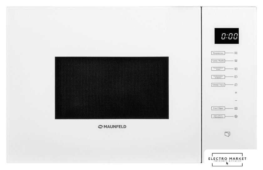 встраиваемая, микроволны и гриль, объем 20 л, выходная мощность микроволн 800 Вт, управление электронное, автоприготовление, авторазмораживание, цвет белый