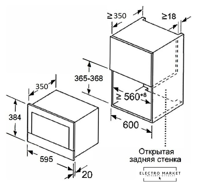встраиваемая, микроволны и гриль, объем 20 л, выходная мощность микроволн 800 Вт, управление электронное, автоприготовление, авторазмораживание, цвет черный