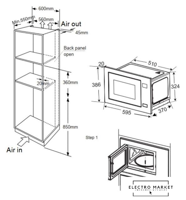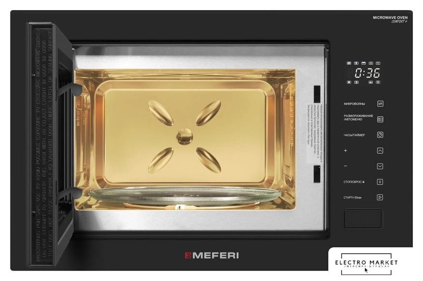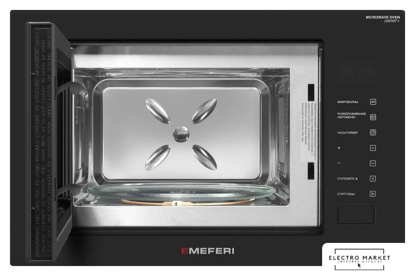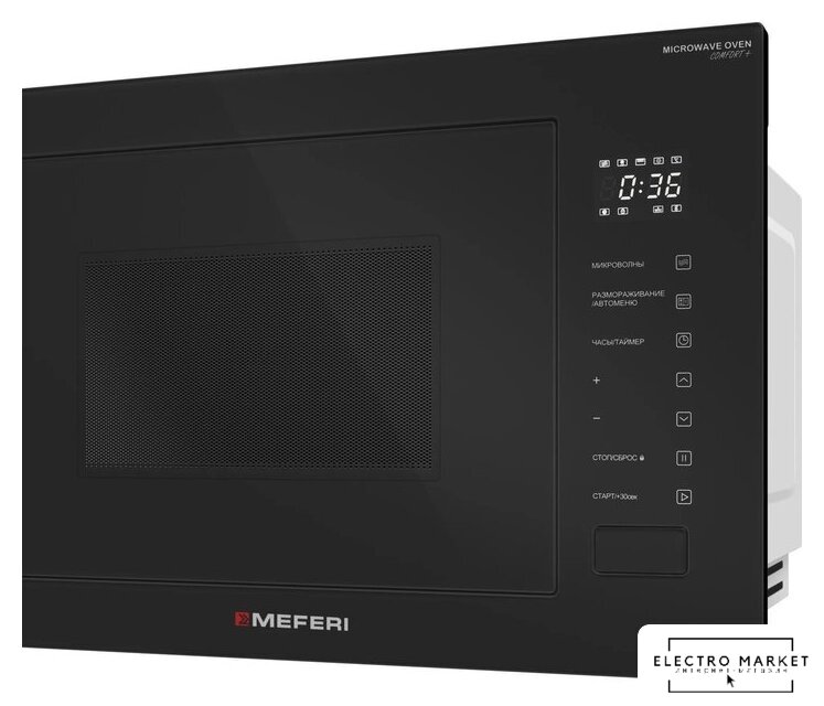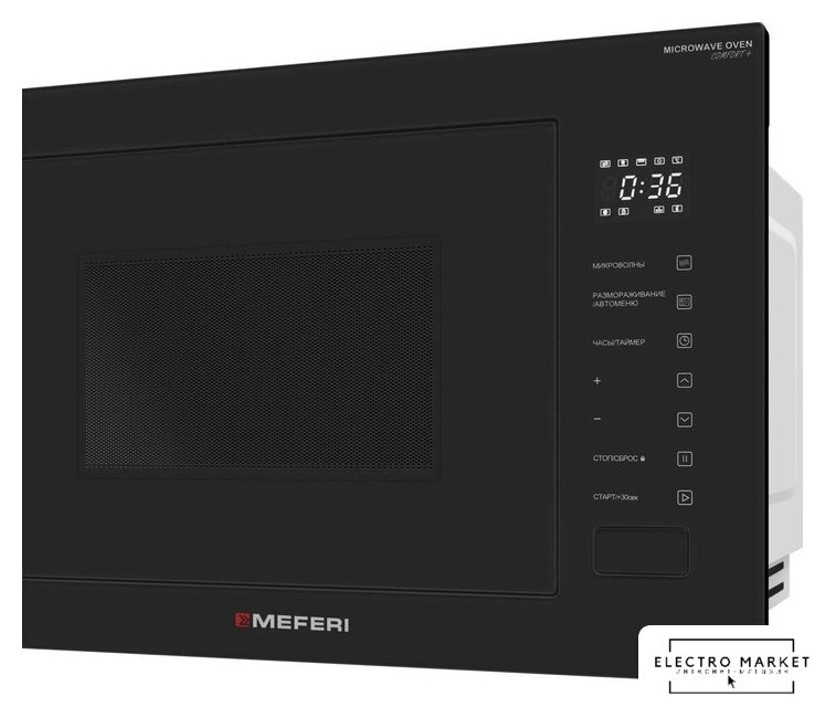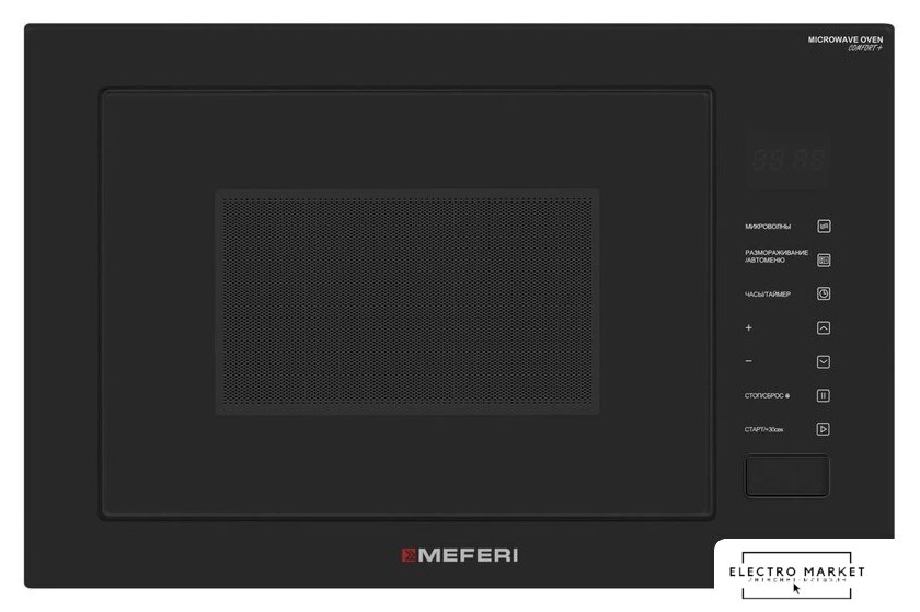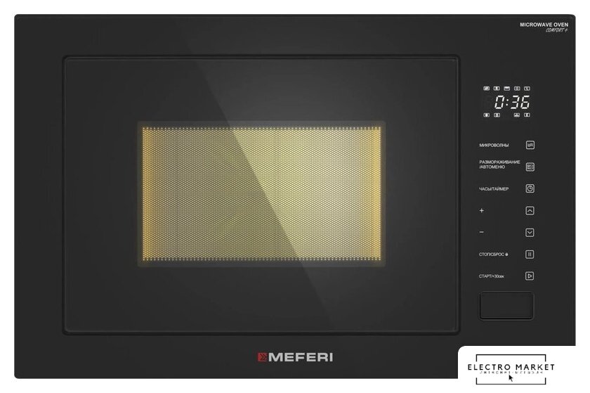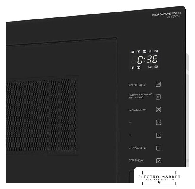 встраиваемая, микроволны и гриль, объем 20 л, выходная мощность микроволн 800 Вт, управление электронное, автоприготовление, авторазмораживание, цвет черный