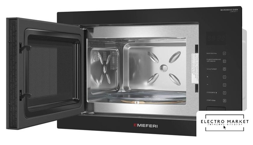 встраиваемая, микроволны и гриль, объем 25 л, выходная мощность микроволн 900 Вт, управление электронное, автоприготовление, авторазмораживание, цвет нержавеющая сталь/черный
