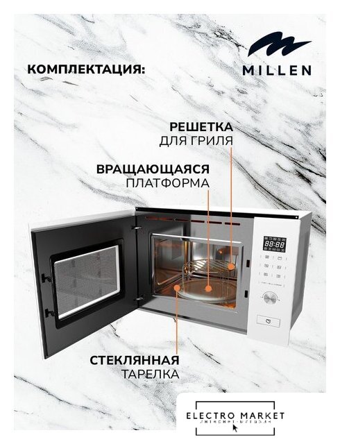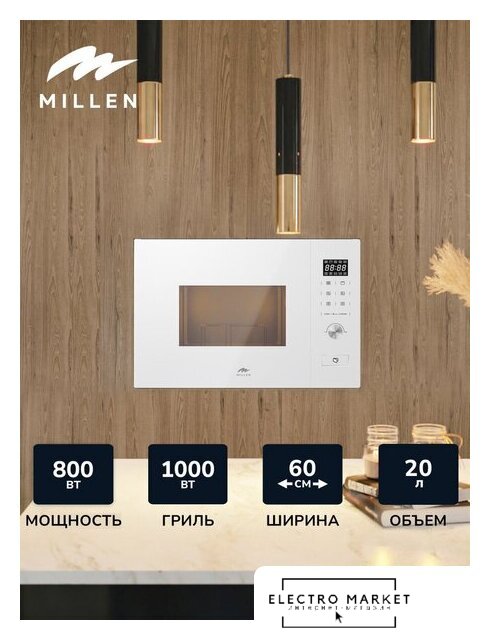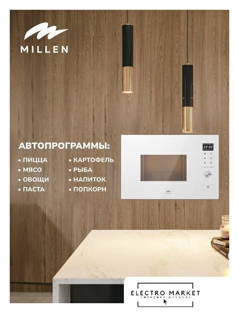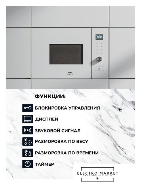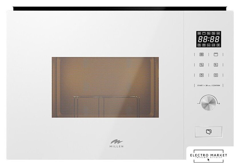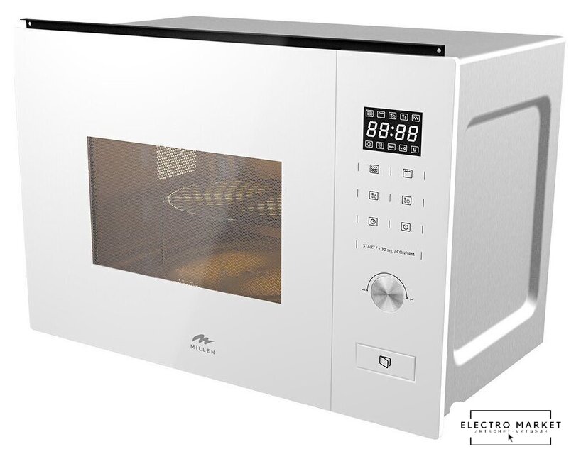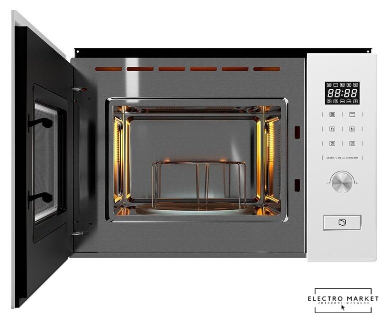 встраиваемая, микроволны и гриль, объем 25 л, выходная мощность микроволн 900 Вт, управление электронное, автоприготовление, авторазмораживание, цвет белый