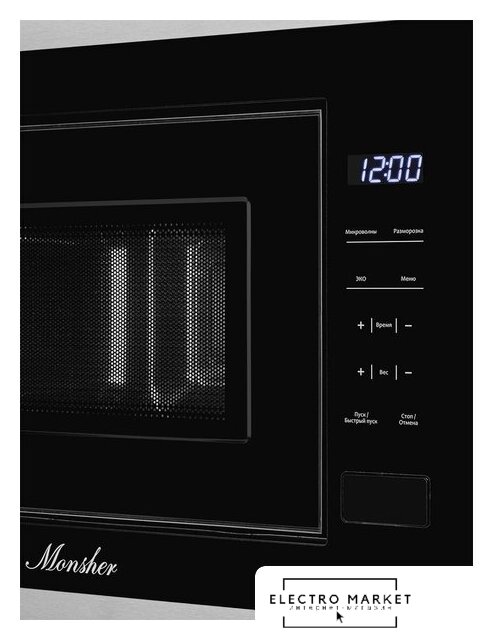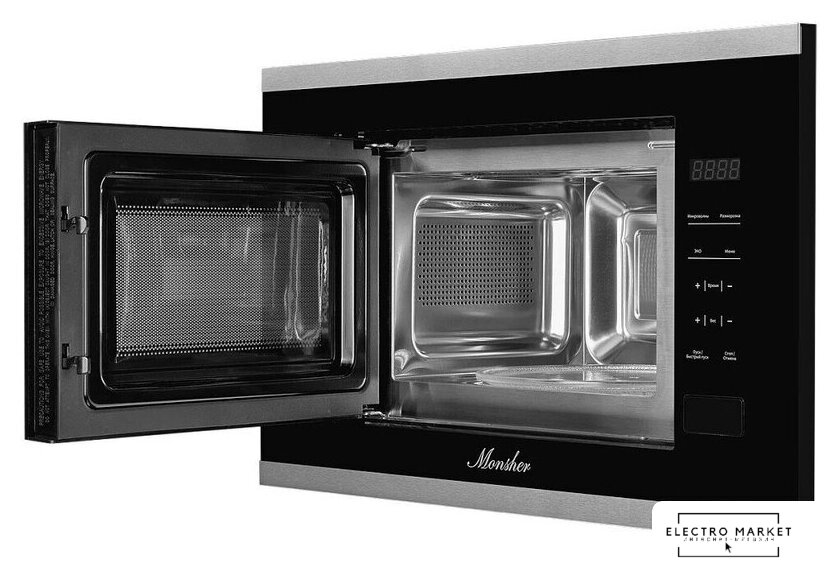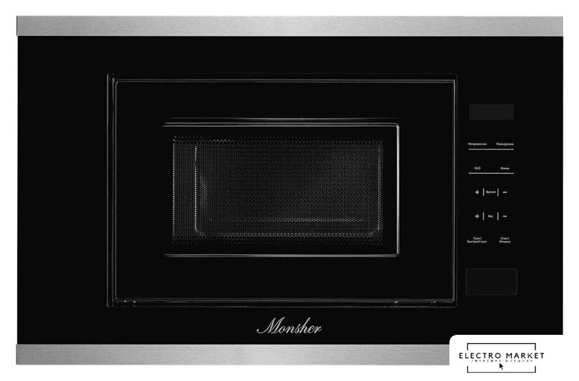 встраиваемая, микроволны и гриль, объем 25 л, выходная мощность микроволн 900 Вт, управление электронное, автоприготовление, авторазмораживание, цвет черный