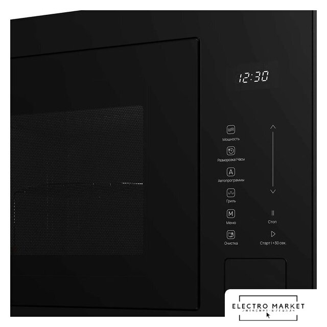 встраиваемая, микроволны (соло), объем 20 л, выходная мощность микроволн 800 Вт, управление электронное, авторазмораживание, цвет черный
