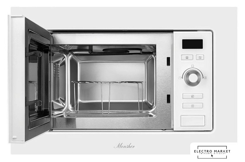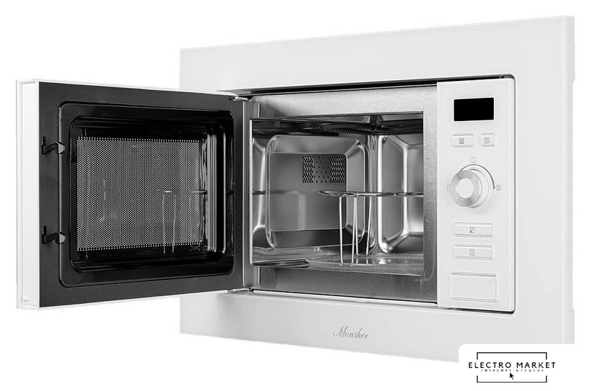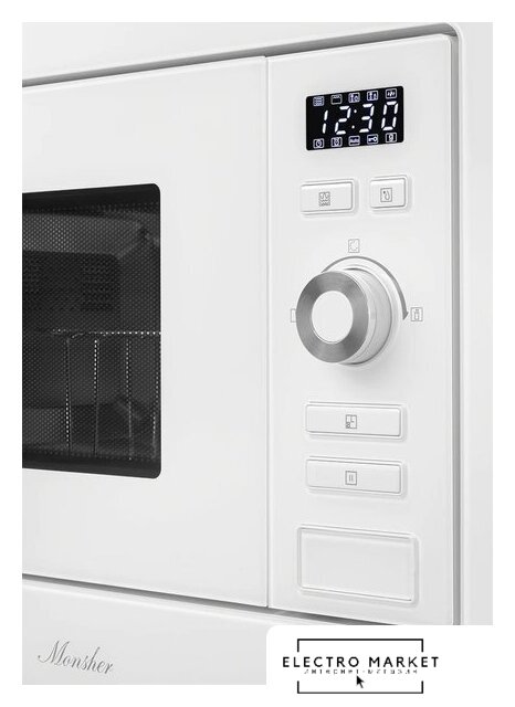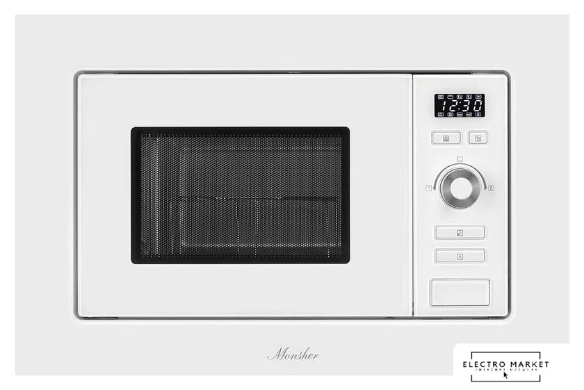 встраиваемая, микроволны и гриль, объем 20 л, выходная мощность микроволн 800 Вт, управление электронное, автоприготовление, авторазмораживание, цвет белый