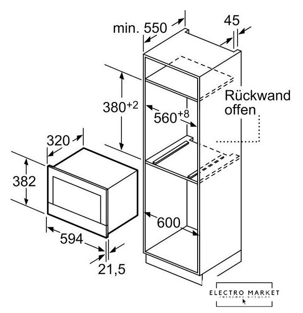 встраиваемая, микроволны и гриль, объем 40 л, выходная мощность микроволн 800 Вт, управление электронное, авторазмораживание, цвет черный