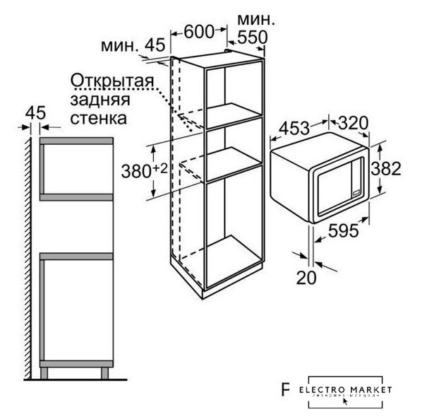 встраиваемая, микроволны (соло), объем 20 л, выходная мощность микроволн 800 Вт, управление электронное, автоприготовление, авторазмораживание, цвет нержавеющая сталь