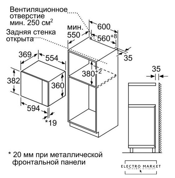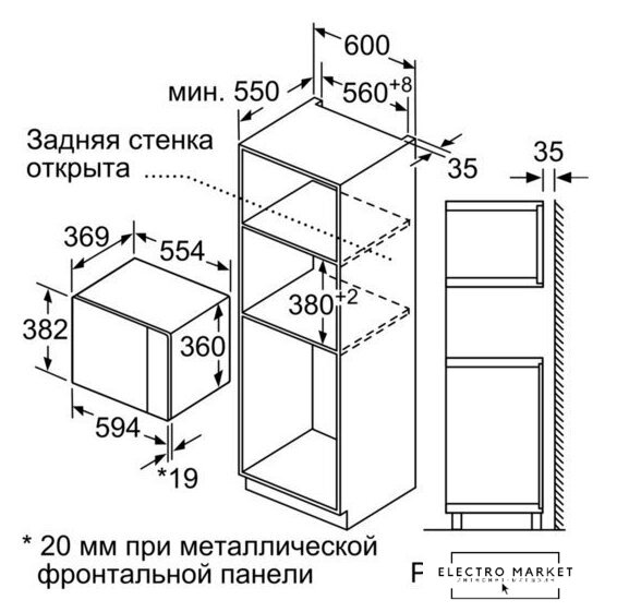 встраиваемая, микроволны (соло), объем 25 л, выходная мощность микроволн 900 Вт, управление электронное, автоприготовление, авторазмораживание, цвет белый/нержавеющая сталь