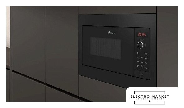 встраиваемая, микроволны (соло), объем 22 л, выходная мощность микроволн 750 Вт, управление электронное, авторазмораживание, цвет черный/нержавеющая сталь
