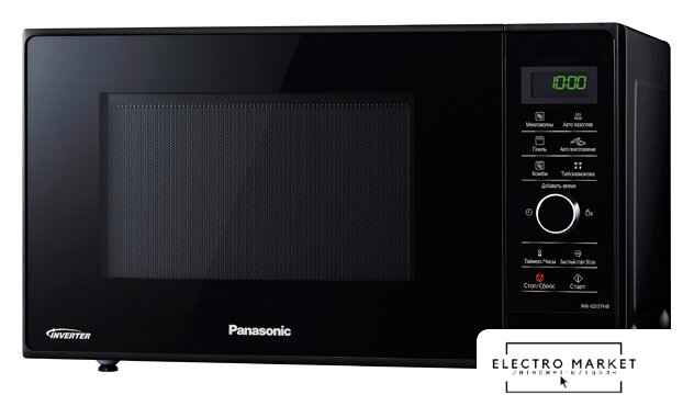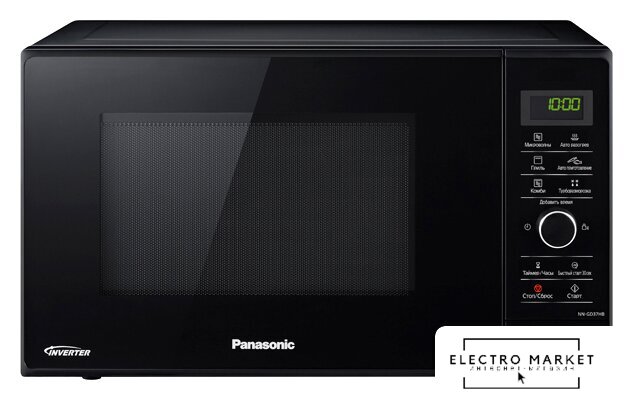 отдельностоящая, микроволны (соло), объем 23 л, выходная мощность микроволн 800 Вт, управление электронное, автоприготовление, авторазмораживание, цвет нержавеющая сталь/черный