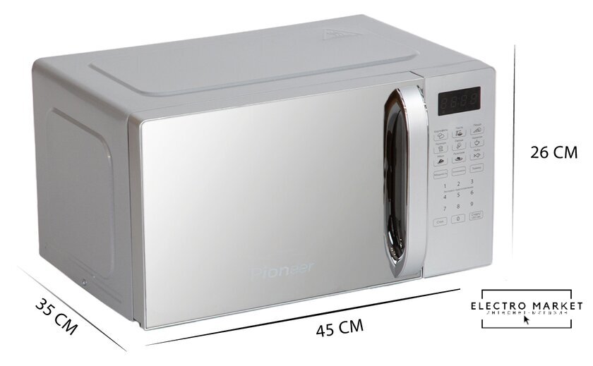 отдельностоящая, микроволны и гриль, объем 20 л, выходная мощность микроволн 800 Вт, управление сенсорное, автоприготовление, авторазмораживание, цвет серебристый