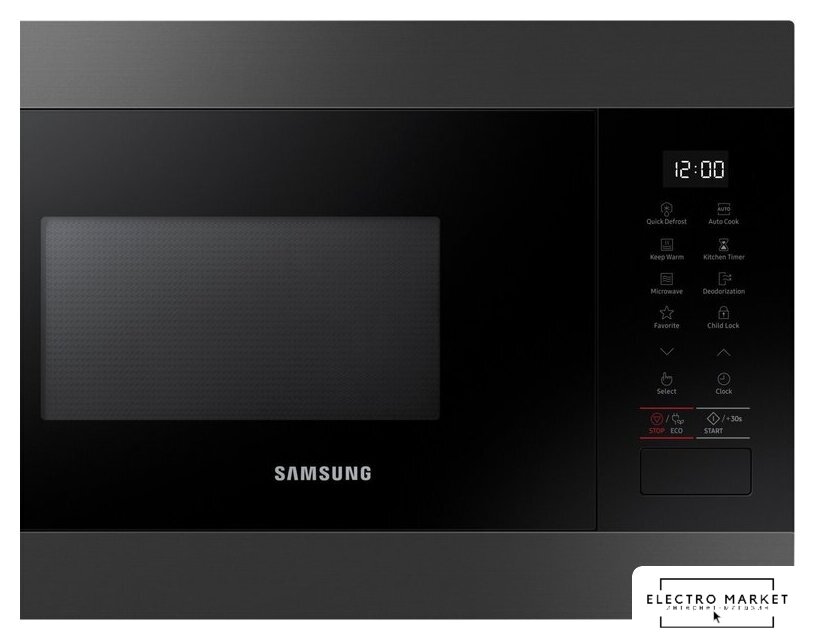 встраиваемая, микроволны (соло), объем 20 л, выходная мощность микроволн 800 Вт, управление электронное, автоприготовление, авторазмораживание, цвет нержавеющая сталь/черный