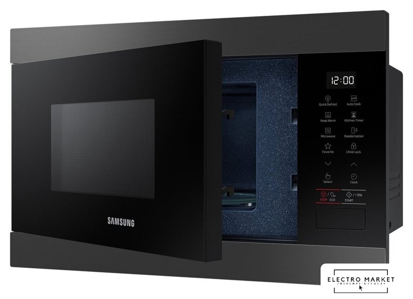 встраиваемая, микроволны (соло), объем 25 л, выходная мощность микроволн 900 Вт, управление электронное, автоприготовление, авторазмораживание, цвет черный