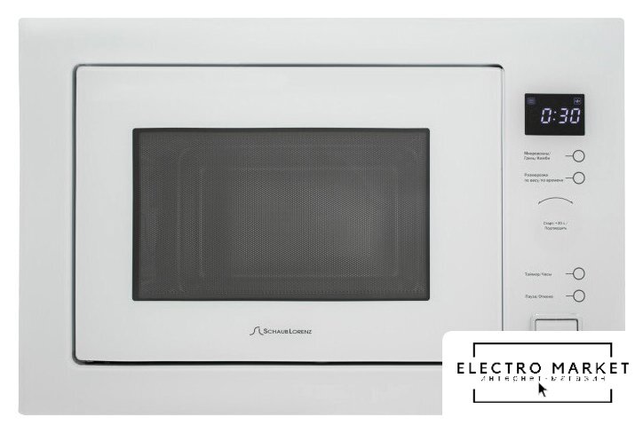 встраиваемая, микроволны (соло), объем 20 л, выходная мощность микроволн 800 Вт, управление электронное, автоприготовление, авторазмораживание, цвет белый