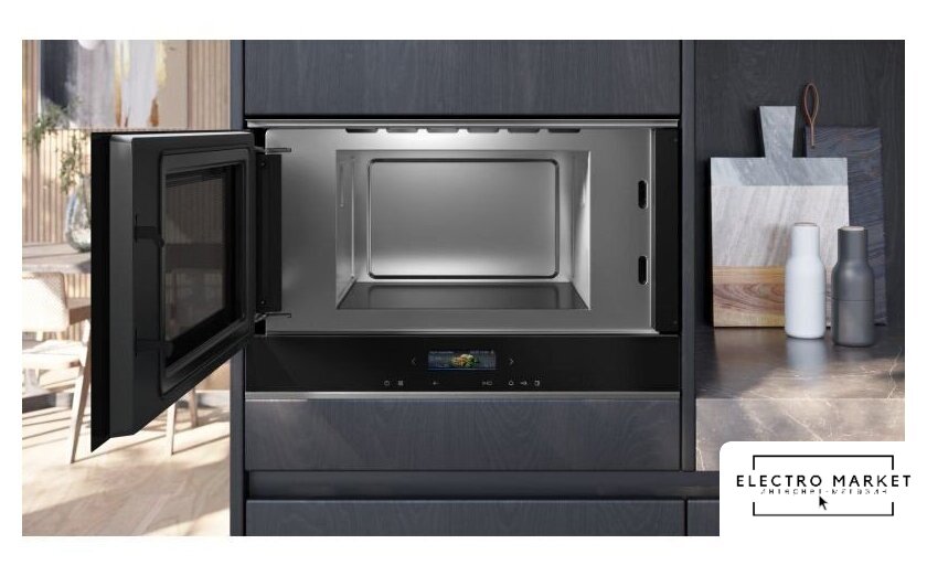встраиваемая, микроволны и гриль, объем 26 л, выходная мощность микроволн 900 Вт, управление сенсорное, автоприготовление, авторазмораживание, цвет черный
