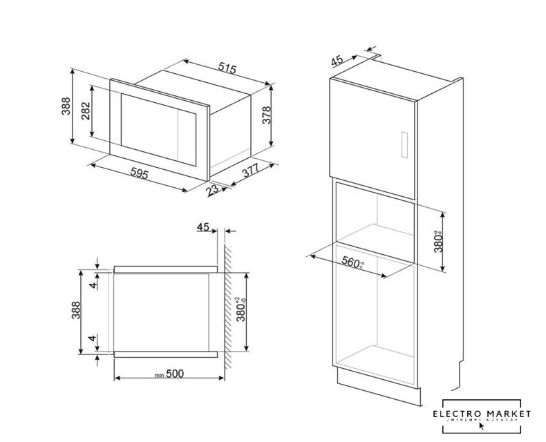 встраиваемая, микроволны и гриль, объем 25 л, выходная мощность микроволн 900 Вт, управление электронное, автоприготовление, авторазмораживание, цвет черный