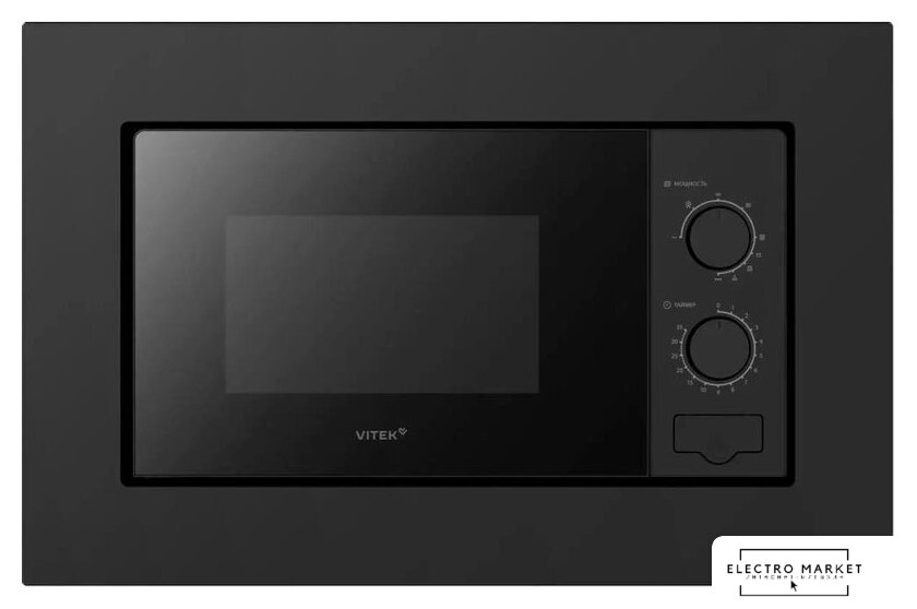встраиваемая, микроволны (соло), объем 20 л, выходная мощность микроволн 700 Вт, управление механическое, цвет черный