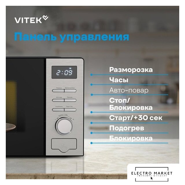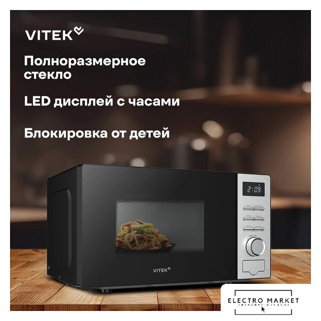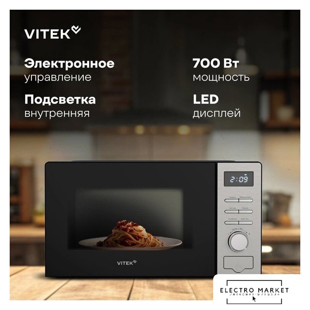 отдельностоящая, микроволны (соло), объем 20 л, выходная мощность микроволн 800 Вт, управление электронное, автоприготовление, авторазмораживание, цвет черный