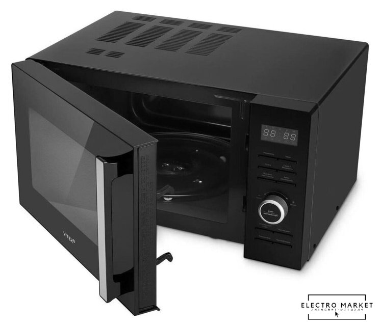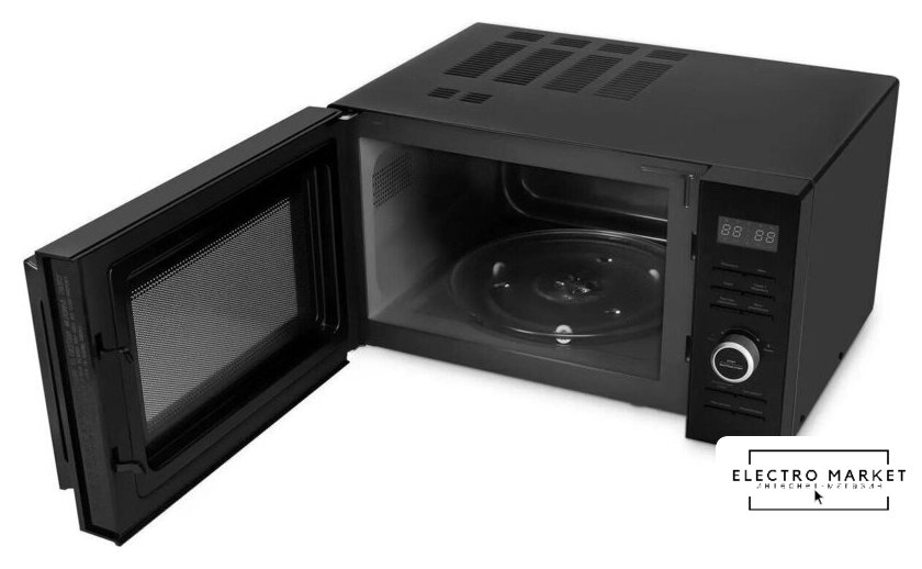отдельностоящая, микроволны (соло), объем 23 л, выходная мощность микроволн 800 Вт, управление электронное, автоприготовление, авторазмораживание, цвет черный