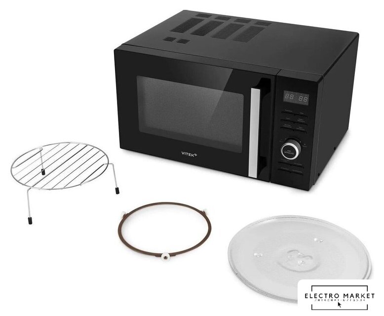 отдельностоящая, микроволны и гриль, объем 23 л, выходная мощность микроволн 800 Вт, управление электронное, автоприготовление, авторазмораживание, цвет черный