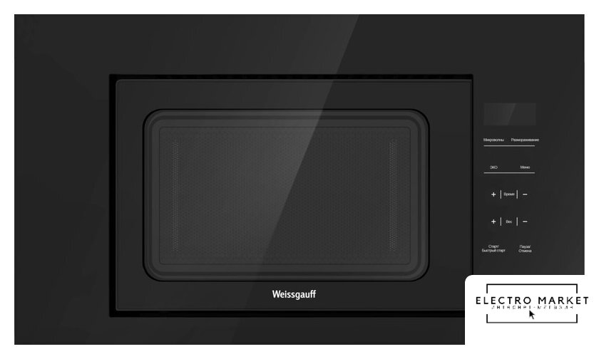 встраиваемая, микроволны (соло), объем 20 л, выходная мощность микроволн 800 Вт, управление электронное, автоприготовление, авторазмораживание, цвет черный