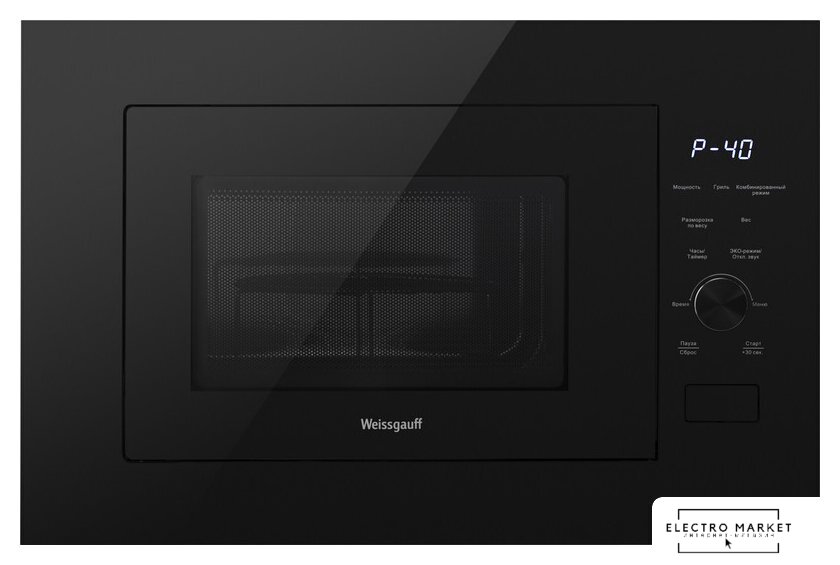 встраиваемая, микроволны и гриль, объем 25 л, выходная мощность микроволн 900 Вт, управление сенсорное, автоприготовление, цвет черный
