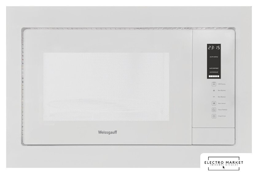 встраиваемая, микроволны (соло), объем 20 л, выходная мощность микроволн 700 Вт, управление электронное, автоприготовление, авторазмораживание, цвет белый