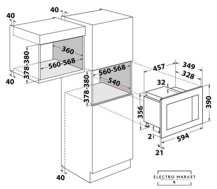 встраиваемая, микроволны (соло), объем 22 л, выходная мощность микроволн 750 Вт, управление электронное, цвет черный