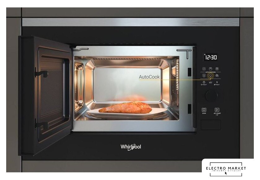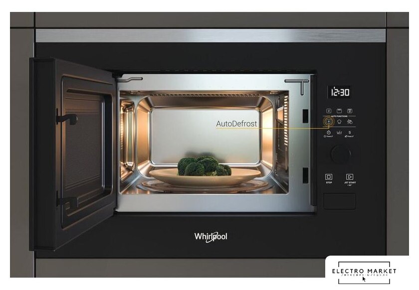 встраиваемая, микроволны и гриль, объем 25 л, выходная мощность микроволн 900 Вт, управление сенсорное, автоприготовление, авторазмораживание, цвет нержавеющая сталь/черный