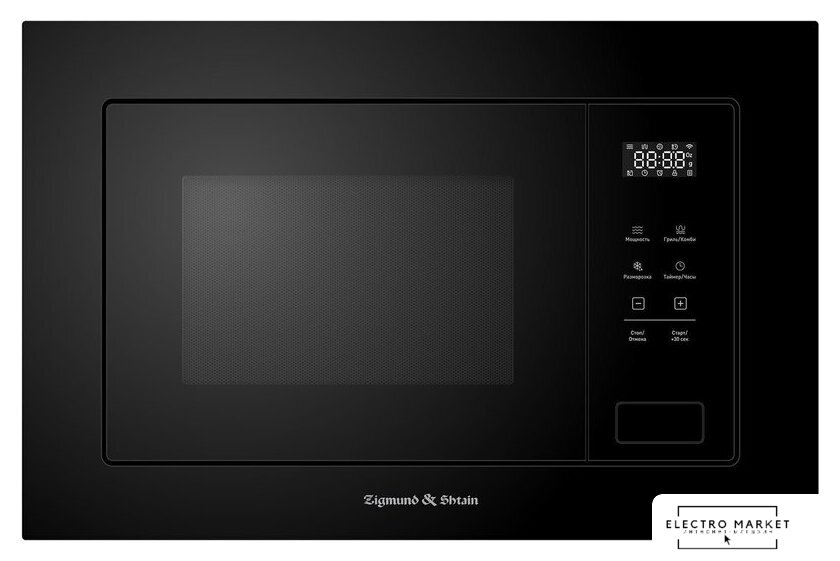 встраиваемая, микроволны и гриль, объем 20 л, выходная мощность микроволн 800 Вт, управление электронное, автоприготовление, авторазмораживание, цвет черный