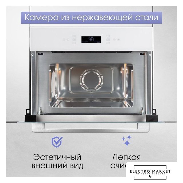 встраиваемая, микроволны и гриль, объем 25 л, выходная мощность микроволн 900 Вт, управление сенсорное, автоприготовление, авторазмораживание, цвет нержавеющая сталь/черный