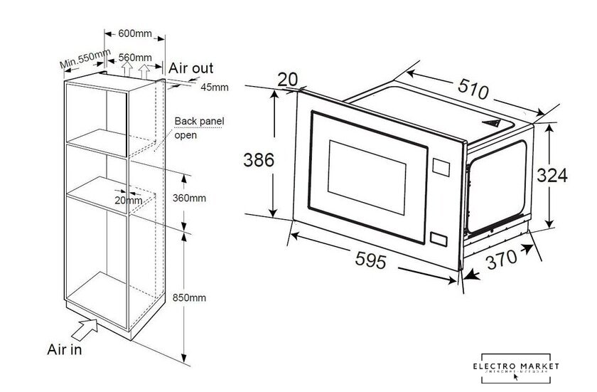 встраиваемая, микроволны (соло), объем 20 л, выходная мощность микроволн 800 Вт, управление электронное, автоприготовление, авторазмораживание, цвет белый