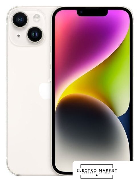 смартфон, Apple iOS, экран 6.7" OLED (1290x2796) 60 Гц, Apple A16 Bionic, ОЗУ 6 ГБ, память 128 ГБ, камера 48 Мп, аккумулятор 4383 мАч, моноблок, влагозащита IP68