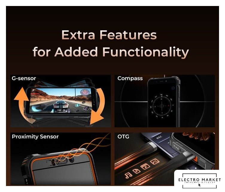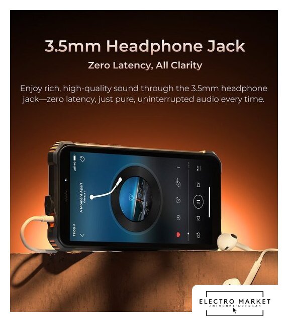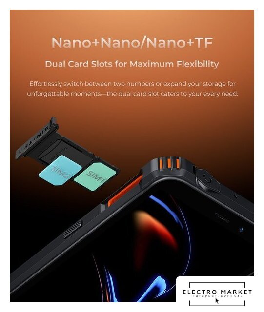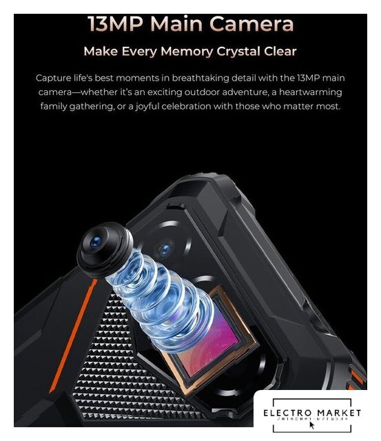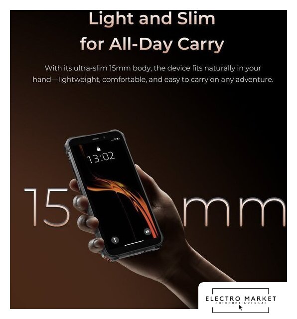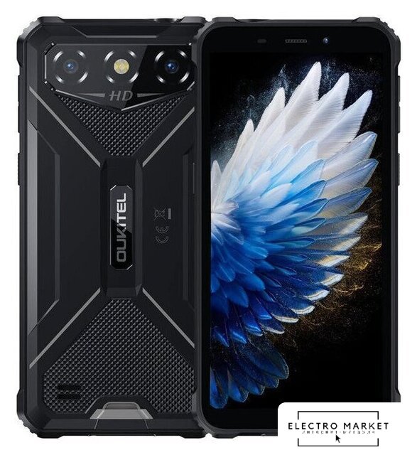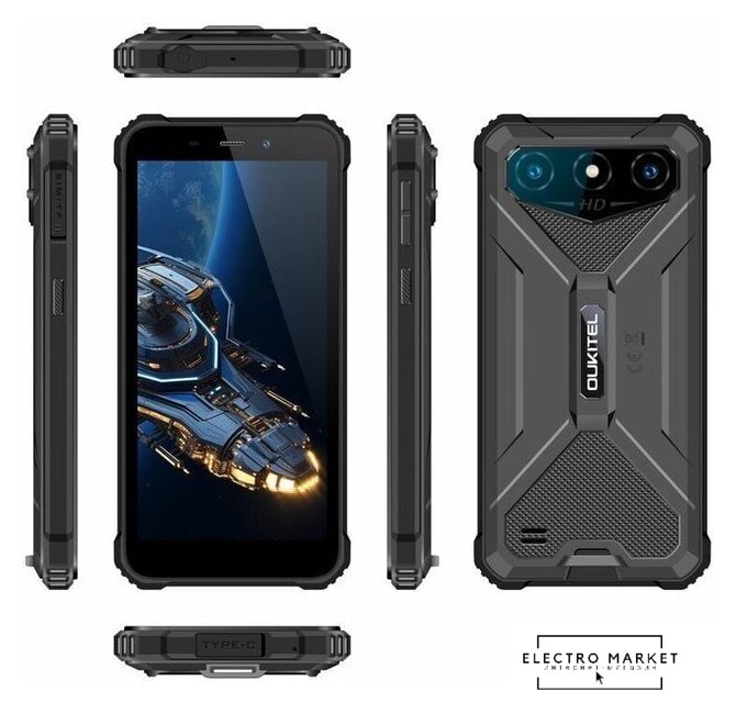 смартфон, Android, экран 6" IPS (576x1152) 60 Гц, UniSoC Tiger T310, ОЗУ 4 ГБ, память 64 ГБ, поддержка карт памяти, камера 13 Мп, аккумулятор 6300 мАч, моноблок, влагозащита IP68/IP69K