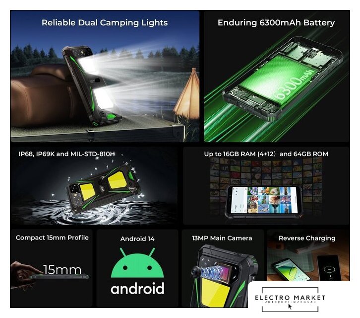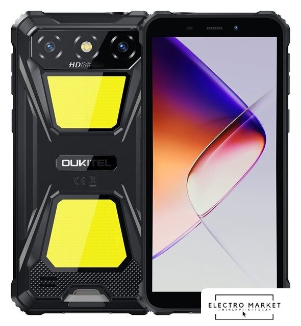 смартфон, Android, экран 6.6" IPS (720x1612) 90 Гц, UniSoC Tiger T7200, ОЗУ 4 ГБ, память 128 ГБ, поддержка карт памяти, камера 16 Мп, аккумулятор 10300 мАч, 2 SIM (nano-SIM), моноблок, влагозащита IP68/IP69K