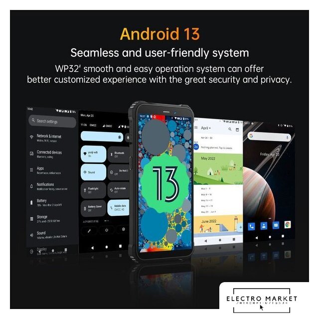 Android, экран 6.56" IPS (720x1612) 90 Гц, UniSoC Tiger T606, ОЗУ 6 ГБ, память 128 ГБ, поддержка карт памяти, камера 48 Мп, аккумулятор 5100 мАч, 2 SIM (nano-SIM), влагозащита IP68/IP69K