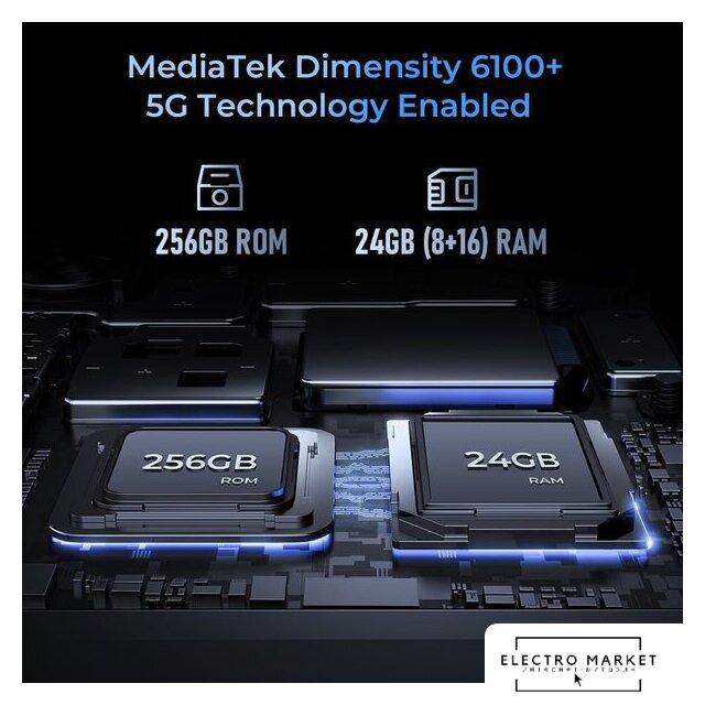 Android, экран 6.7" IPS (1080x2388) 90 Гц, Mediatek Dimensity 6020, ОЗУ 8 ГБ, память 256 ГБ, камера 100 Мп, аккумулятор 4500 мАч, 2 SIM (nano-SIM)
