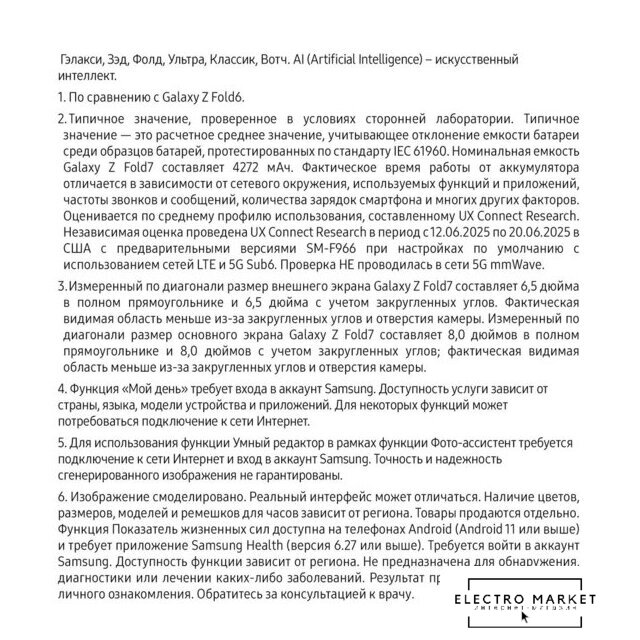 Отличия от предыдущего поколения | ✅ В Galaxy Z Fold7 реализовано несколько инноваций, которые отличают его не только от Galaxy Z Fold6, но и от любого другого складного смартфона на рынке. Во-первых, широкие дисплеи как внутри, так и снаружи. Диагональ внешнего экрана теперь составляет 6.5 дюйма, а основной экран имеет впечатляющую диагональ 8 дюймов с более широким соотношением сторон, что обеспечивает более плавную работу в многозадачном режиме.✅ И хотя дисплеи стали больше, сам смартфон значительно уменьшился в размерах и стал более портативным, чем все предыдущие Galaxy Z Fold, как в сложенном, так и в раскрытом виде. В раскрытом виде его толщина составляет 4.2 мм, а в сложенном — 8.9 мм, что делает его примерно на 25% тоньше Galaxy Z Fold6.✅ В сложенном состоянии экран Galaxy Z Fold7 имеет соотношение сторон 21:9, аналогичное соотношению сторон у премиальных смартфонов моноблокового типа. Такое улучшенное соотношение сторон обеспечивает удобство и естественность набора текста, а также повышает производительность. |