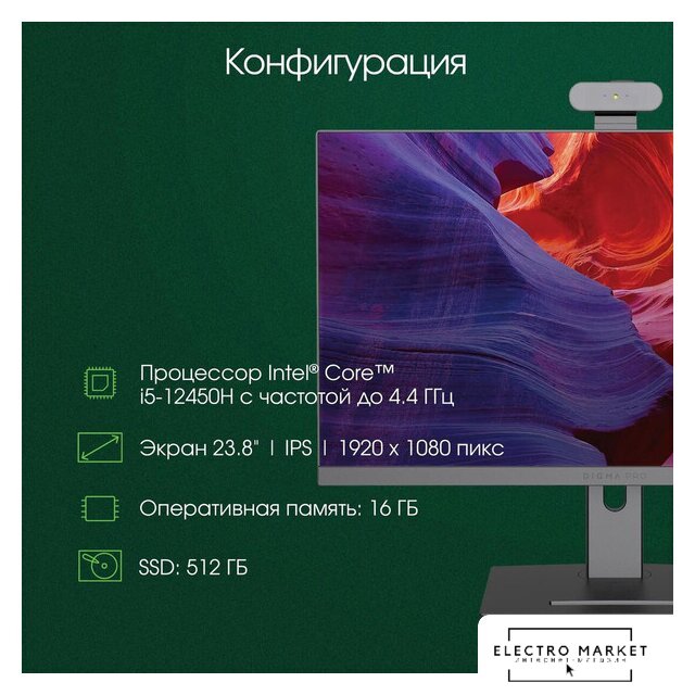 23.8" 1920 x 1080 IPS, матовый, несенсорный, Intel Core i5 12400 4400 МГц, 16 ГБ, SSD 512 ГБ, видеокарта встроенная, Windows 11 Pro, цвет черный