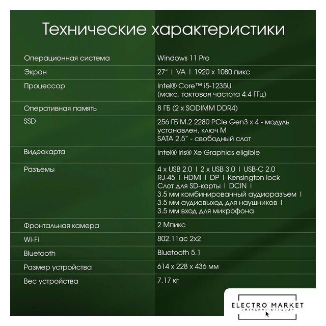 27" 1920 x 1080 IPS, матовый, несенсорный, Intel Core 3 100U 4700 МГц, 8 ГБ, SSD 512 ГБ, видеокарта встроенная, без ОС, цвет белый