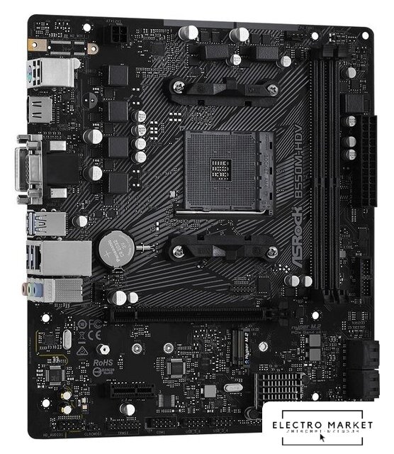 mATX, сокет AMD AM4, чипсет AMD B550, память 4xDDR4 до 4866 МГц, слоты: 2xPCIe x16 4.0, 2xPCIe x1, 2xM.2, 802.11ax (Wi-Fi 6)+Bluetooth 5.2