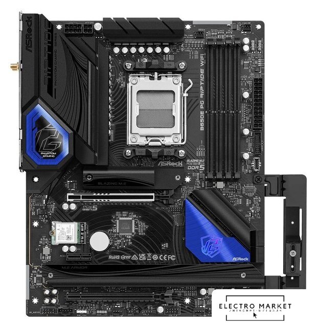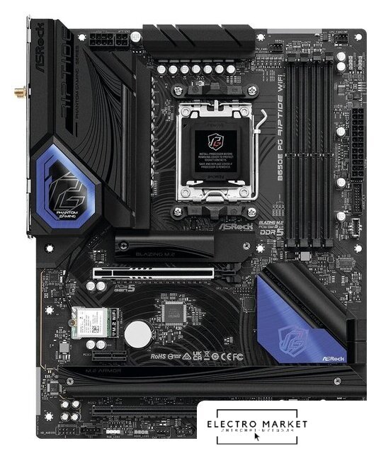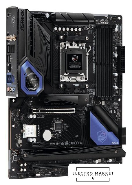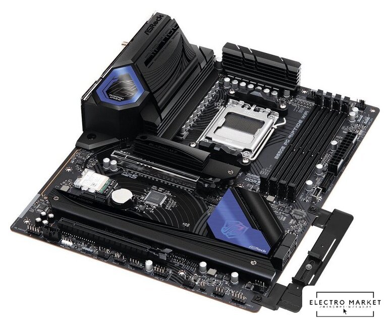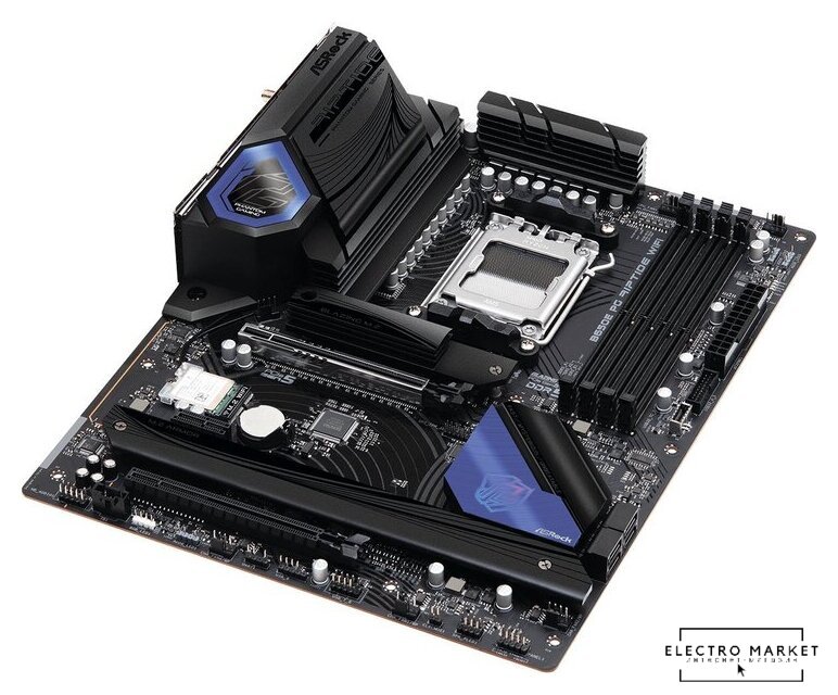 eATX, сокет AMD AM5, чипсет AMD X870E, память 4xDDR5 до 8200 МГц, слоты: 2xPCIe x16 5.0, 4xM.2, 802.11be (Wi-Fi 7)+Bluetooth 5.4, 24+2+1 фаз питания