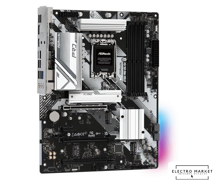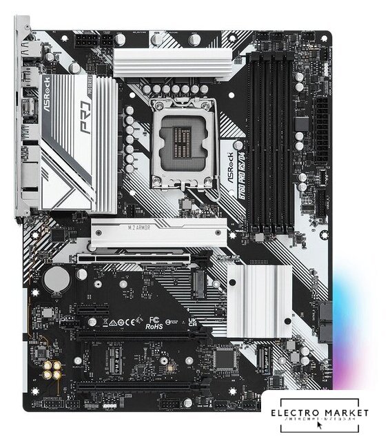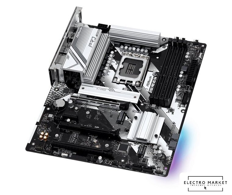 mATX, сокет Intel LGA1700, чипсет Intel B760, память 4xDDR4 до 5333 МГц, слоты: 3xPCIe x16 4.0, 2xM.2, 802.11ax (Wi-Fi 6)+Bluetooth 5.2