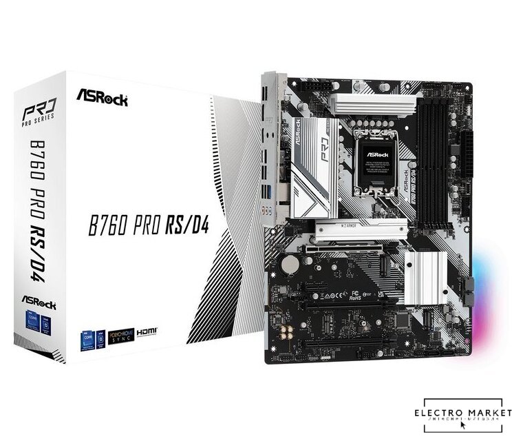 mATX, сокет Intel LGA1700, чипсет Intel B760, память 4xDDR4 до 5333 МГц, слоты: 1xPCIe x16 4.0, 1xPCIe x1, 2xM.2